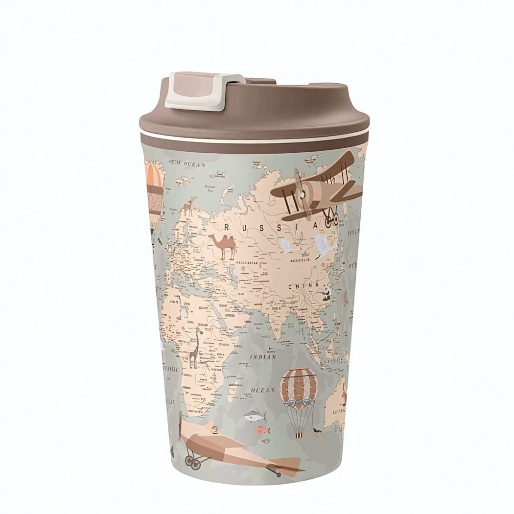 Термостакан с инновационной системой теплоизоляции сохраняет температуру напитков до 3 часов, сопровождая вас в дорожных приключениях. Стильный дизайн с детализированной картой мира превращает обычную кружку в аксессуар для настоящих исследователей.