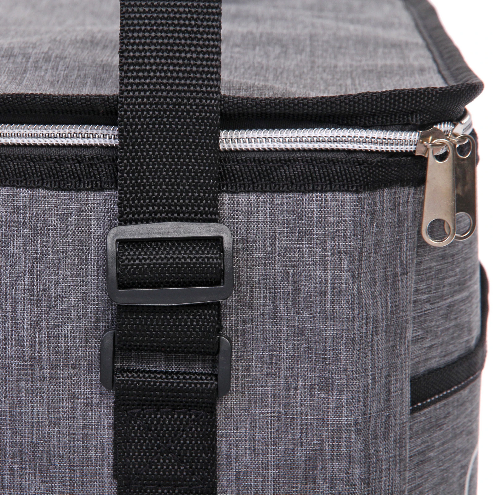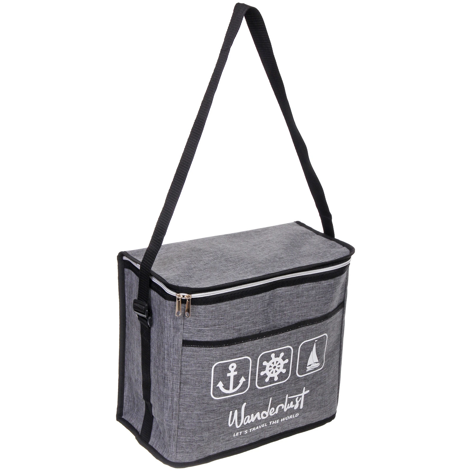 Прямоугольная форма позволяет рационально разместить контейнеры, бутылки и упаковки с продуктами. Верхняя крышка закрывается на молнию с двумя металлическими бегунками, что обеспечивает удобный доступ к содержимому. Внутренняя поверхность выполнена из светоотражающего материала, который способствует поддержанию температуры.