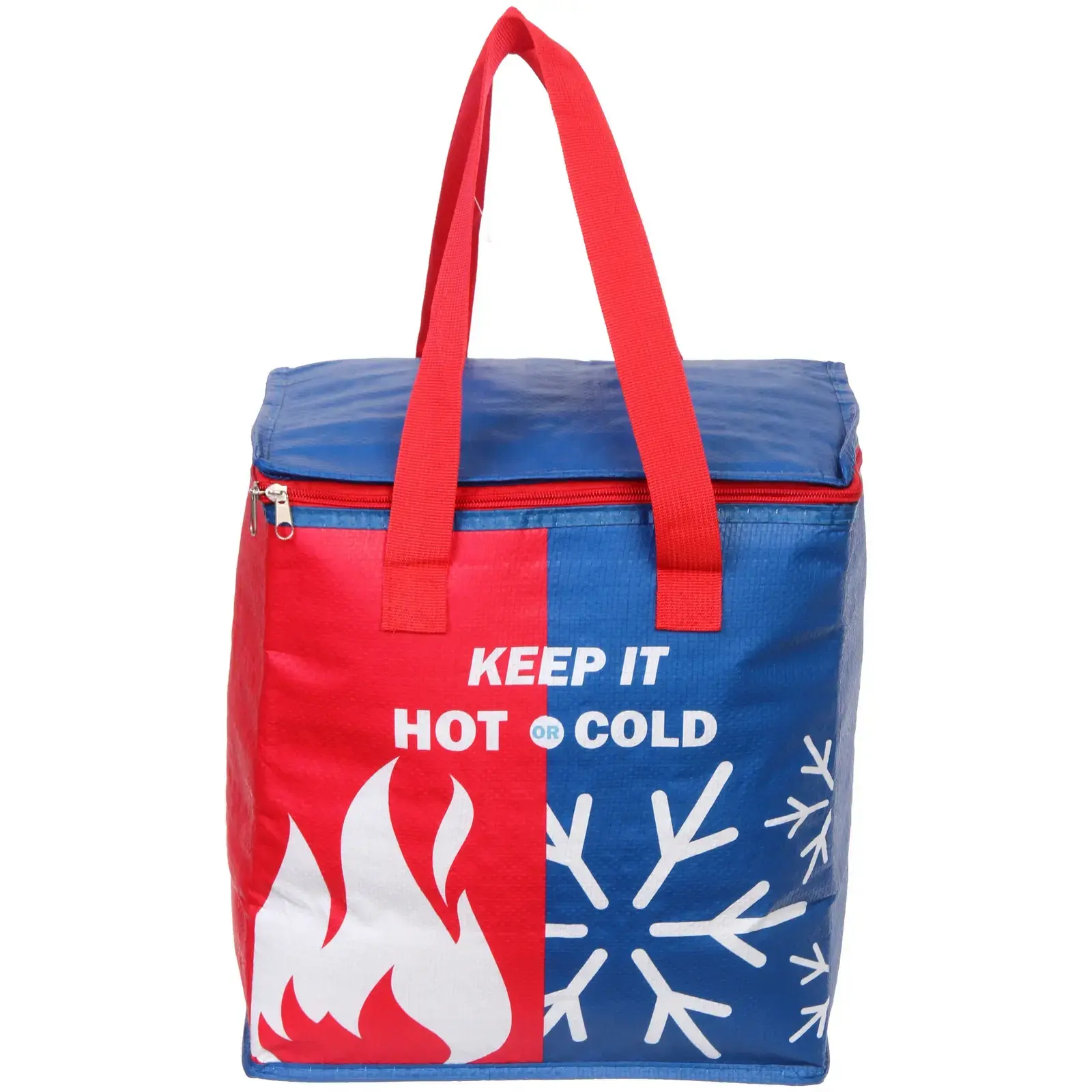 - Яркий дизайн с изображениями пламени и снежинки делает сумку стильной и заметной.