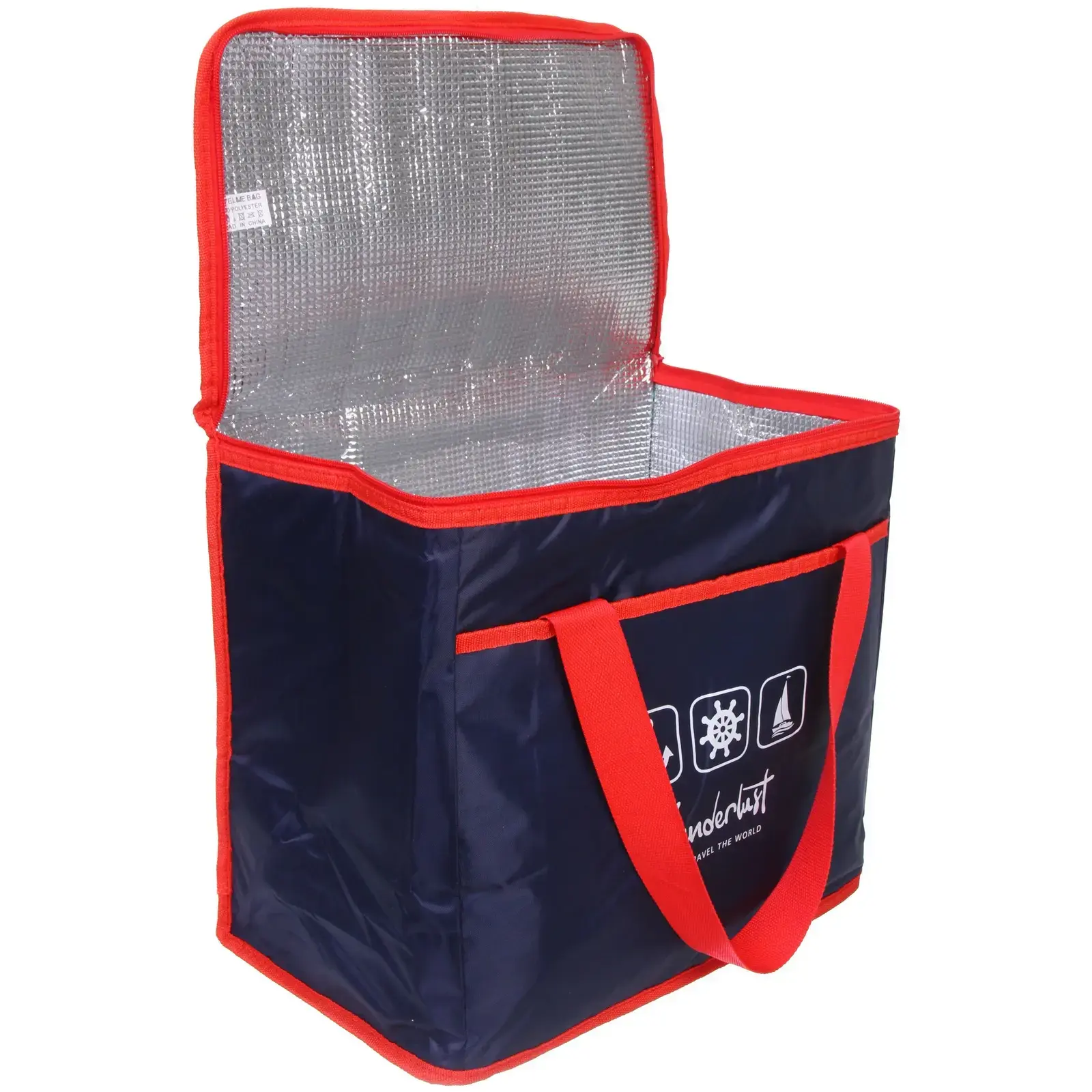 Эта термосумка имеет прямоугольную форму и размеры 40х25х35 см, что позволяет удобно размещать в ней различные продукты. Она оснащена двумя прочными ручками, что обеспечивает комфортную переноску. Внутренняя сторона сумки покрыта специальным металлическим материалом, который эффективно сохраняет температуру, а водоотталкивающий внешний слой защищает содержимое от влаги.