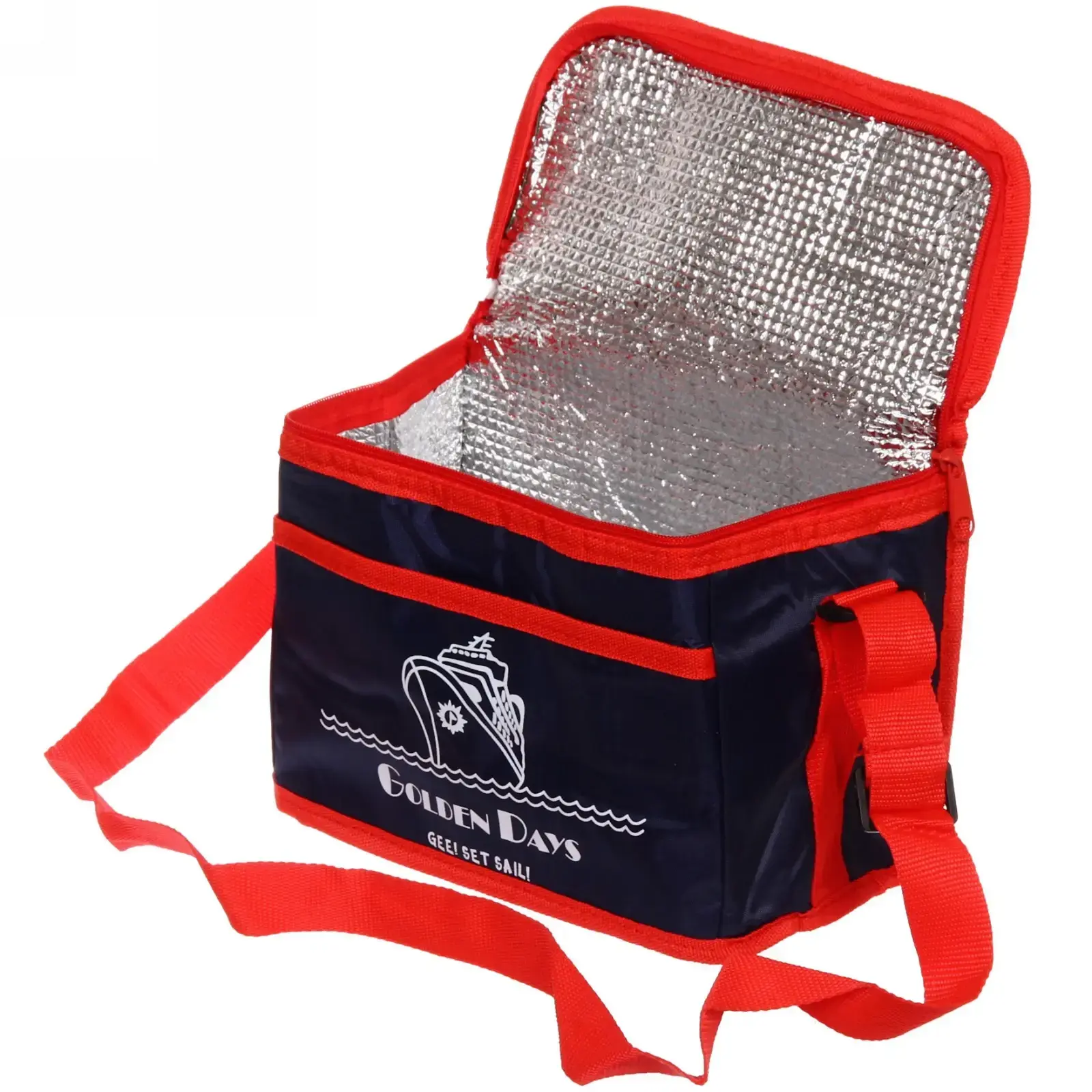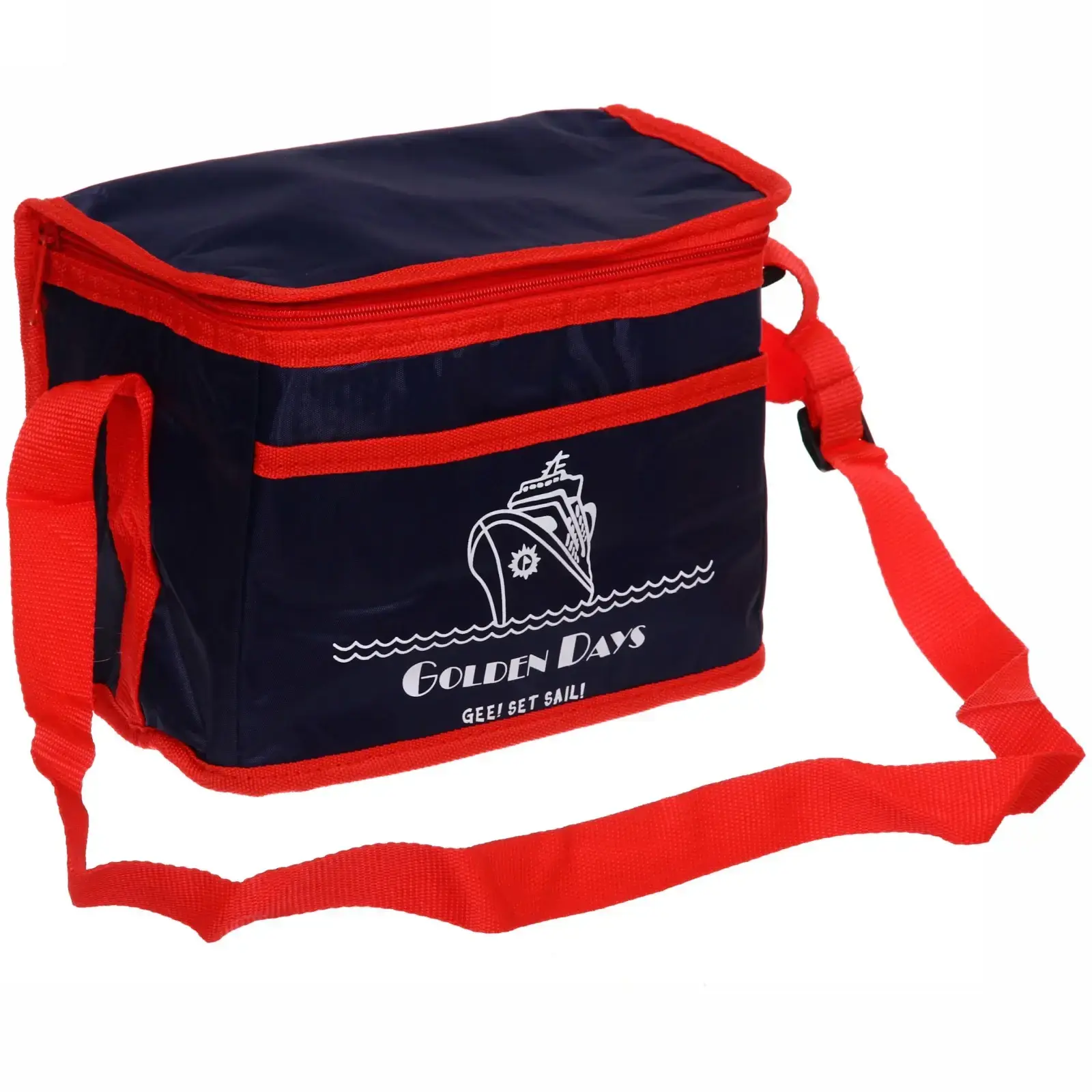 Термосумка выполнена в стильном темно-синем цвете с красными элементами, что делает ее не только функциональной, но и привлекательной. Она имеет прямоугольную форму и застегивается на молнию, что обеспечивает легкий доступ к содержимому. Размеры термосумки делают ее удобной для переноски, а также позволяют использовать ее в различных ситуациях.