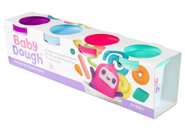 Тесто для лепки BabyDough, 4 цвета: фиолетовый, мятный, розовый, голубой, 4 x 100 г – для развития моторики