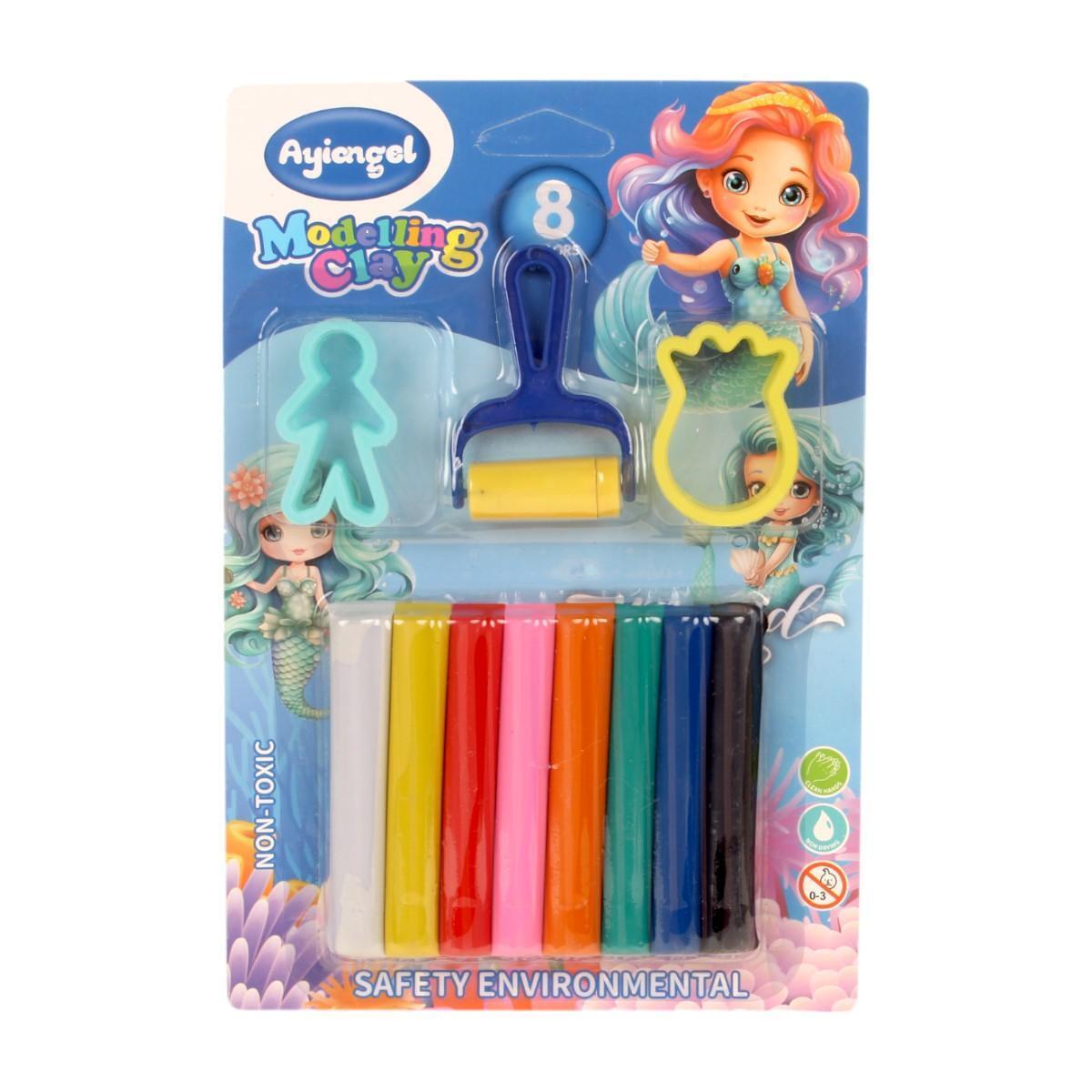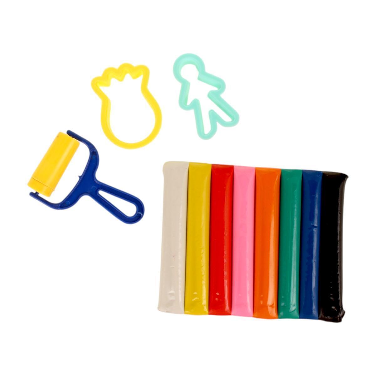 Набор включает все необходимое для увлекательных занятий: восемь ярких цветов, удобный пластиковый каток и две формочки для вырезания фигур.
