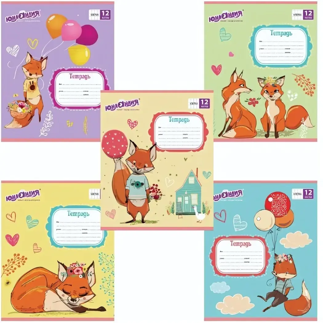 Тетрадь «Лисята» 12 листов, А5, клетка, мелованный картон, ассорти цветов обложки