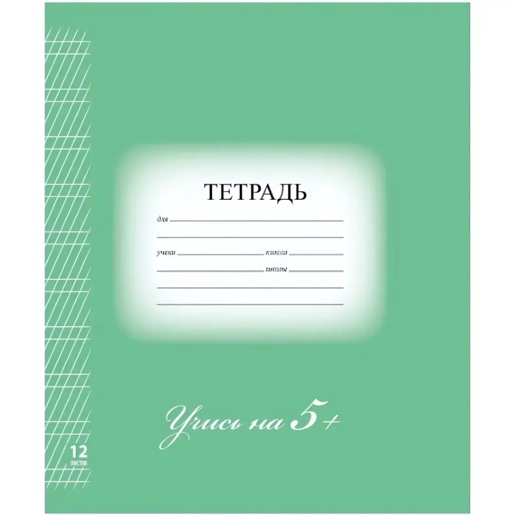 Тетрадь «5-ка» с косой линией, 12 листов А5, зеленая обложка из мелованного картона