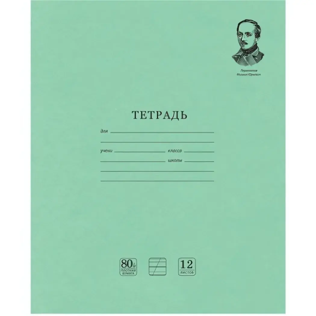 Тетрадь «Лермонтов М.Ю» А5, 12 л., косая линия с горизонтальной разлиновкой, зеленая обложка
