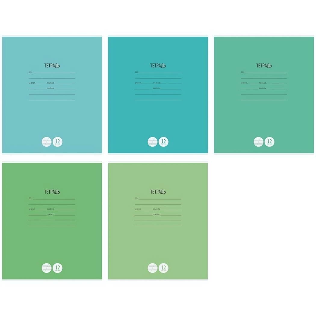 Тетрадь школьная А5 12л косая линия 'Одноцветная. Школьная' микс цветов, комплект 5 тетрадей