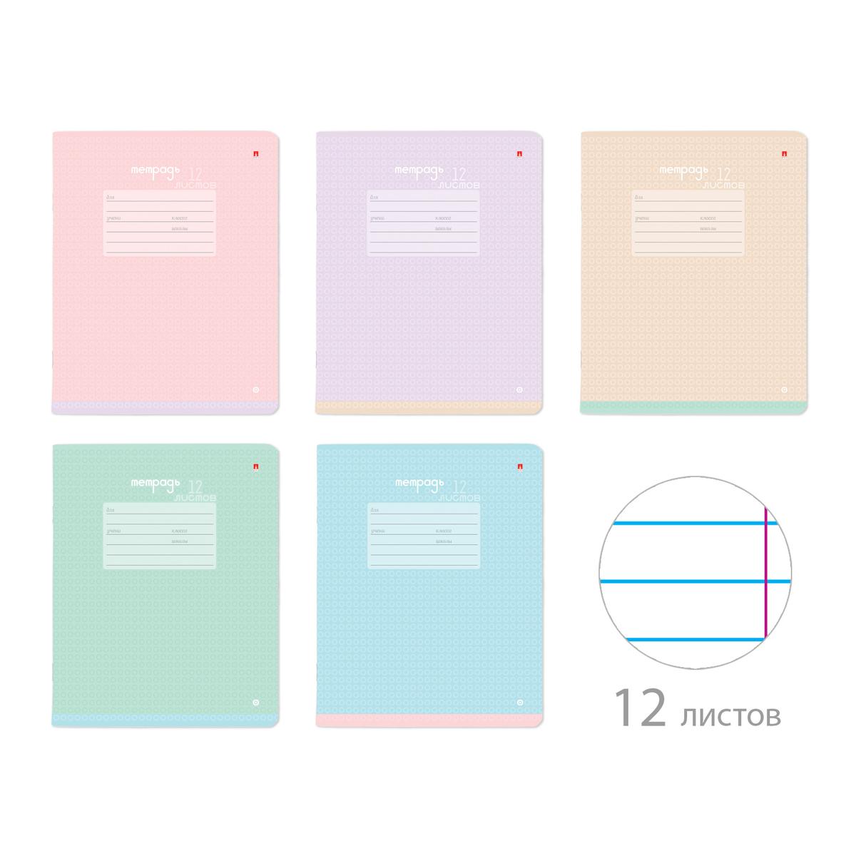 Тетрадь 12л лин 'Бриз', пастельные тона, микс цветов, обложка 190г/м², комплект 3 тетради