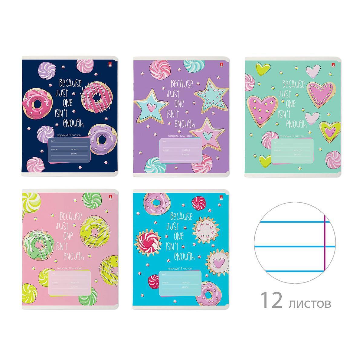 Тетрадь «Сладкое настроение» 12 листов, А5, линейка, мелованный картон, скругленные углы