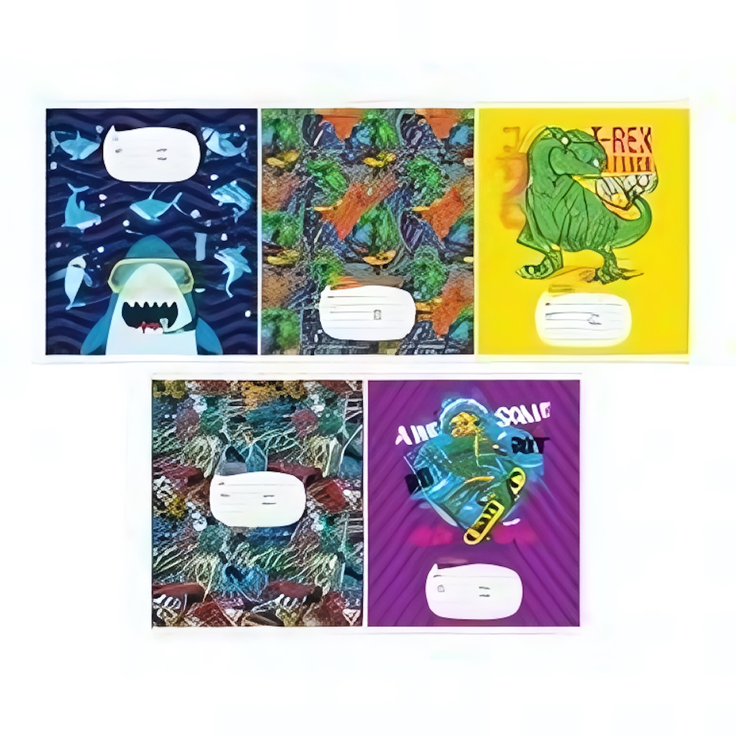 Тетрадь с динамичными рисунками динозавров и морских обитателей создаст позитивный настрой на учебу. Прочная глянцевая обложка с индивидуальным полем для подписи сохранит аккуратный вид до конца четверти.