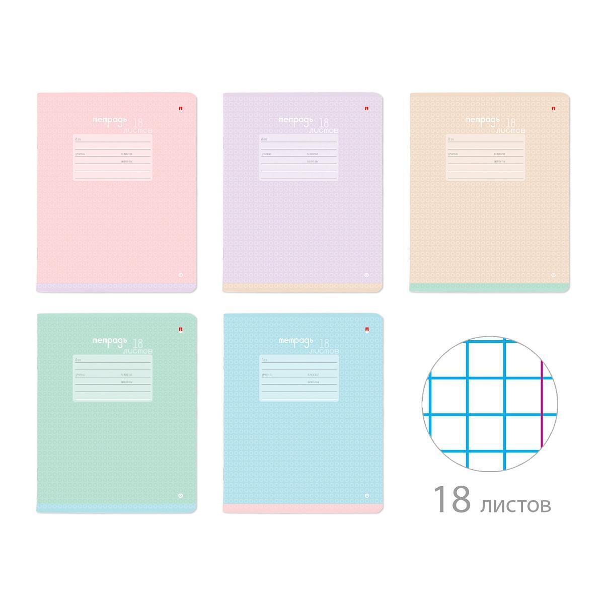 Тетрадь школьная «Бриз» 18л, клетка с полями, пастельные цвета, скругленные углы