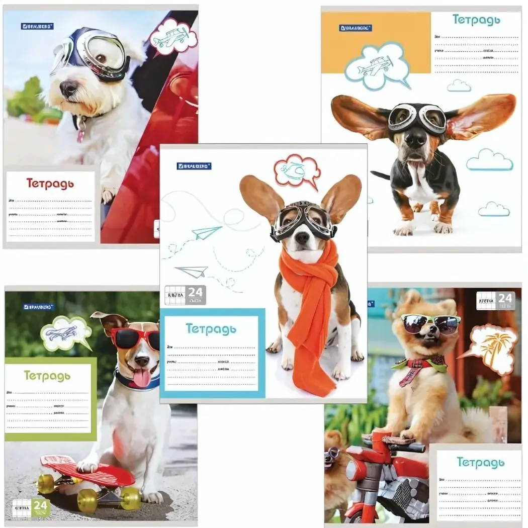 Эта тетрадь станет вашим надежным спутником в учебе и работе благодаря стильному дизайну и практичности. Обложка украшена очаровательными изображениями собак в очках, шлемах и с аксессуарами, которые добавят позитива каждому дню.
