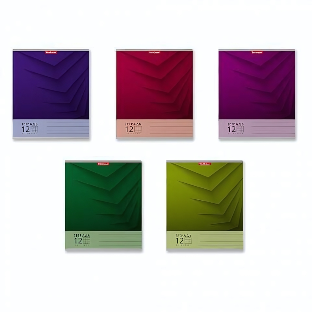 Тетради поставляются в наборе из 5 штук разных цветов: фиолетовый, пурпурный, красный, зеленый и оливковый. Синяя линовка обеспечивает удобное написание с соблюдением полей.