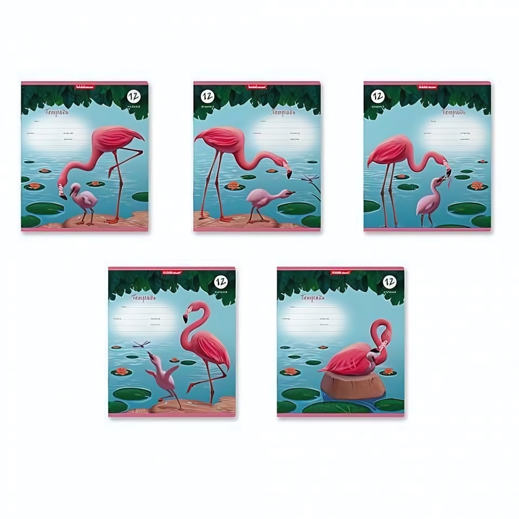 Набор из 5 тетрадей с уникальным дизайном превратит школьные будни в удовольствие! Нежные иллюстрации розовых фламинго на фоне водоема создают позитивное настроение, а прочная обложка защищает записи весь учебный год.