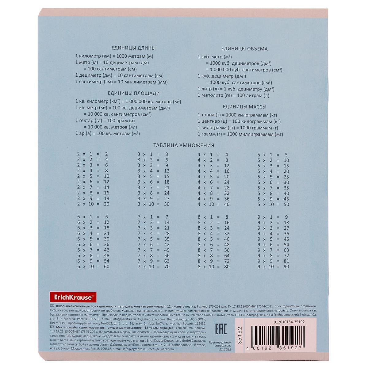 Тетрадь школьная "Классика" А5, 12 листов, клетка, голубая, Erich Krause, комплект 3 тетради.