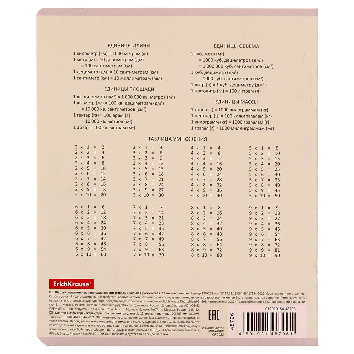 Тетрадь поставляется в миксе пастельных цветов, что делает ее не только функциональной, но и эстетичной. На оборотной стороне вы найдете полезные справочные материалы: таблицу умножения и единицы измерения. Это помогает детям быстро ориентироваться в базовых математических понятиях.