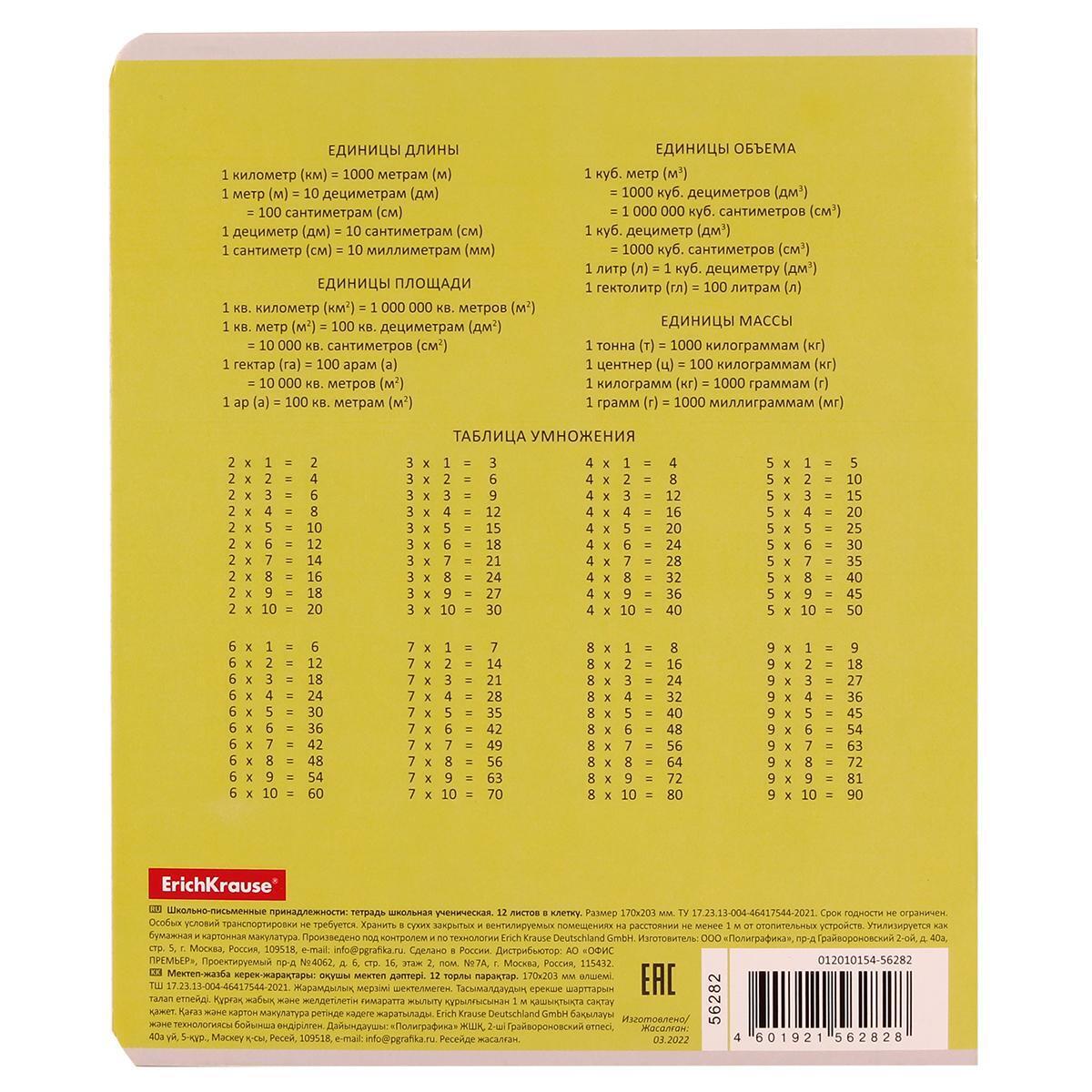 Обложка из плотного картона (180 г/м2) обеспечивает долговечность. Внутренний блок содержит 12 листов офсетной бумаги (60 г/м2) с классической голубой клеткой и красными полями. Белизна бумаги 100% гарантирует комфорт при письме.