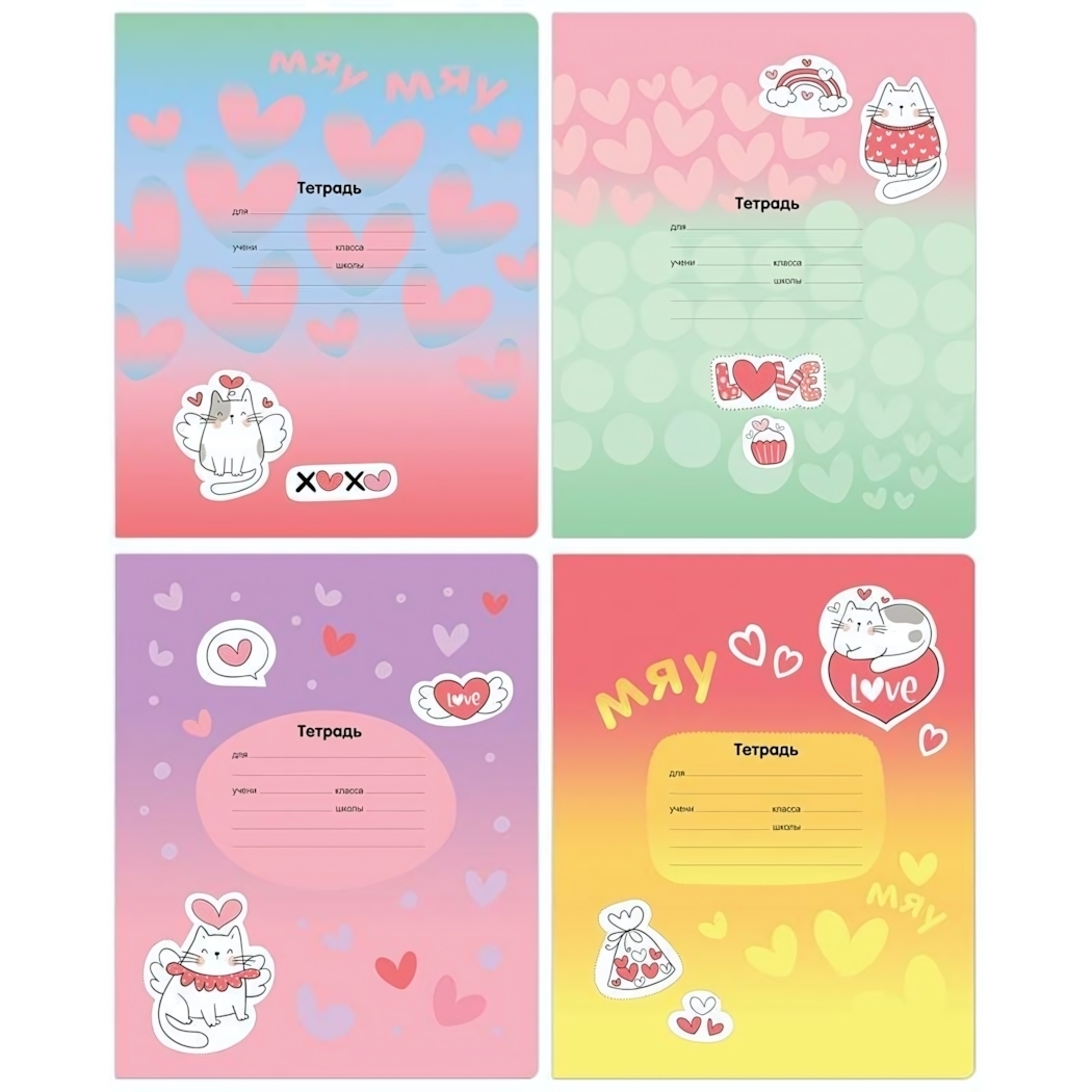 Тетрадь школьная А5 12л, клетка, дизайн «Love мяу» с блестками, таблица умножения на обложке