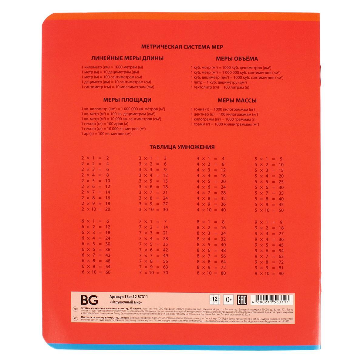 Тетрадь школьная А5, 12л клетка, 'Игрушечный мир', мелованный картон, комплект 3 тетради