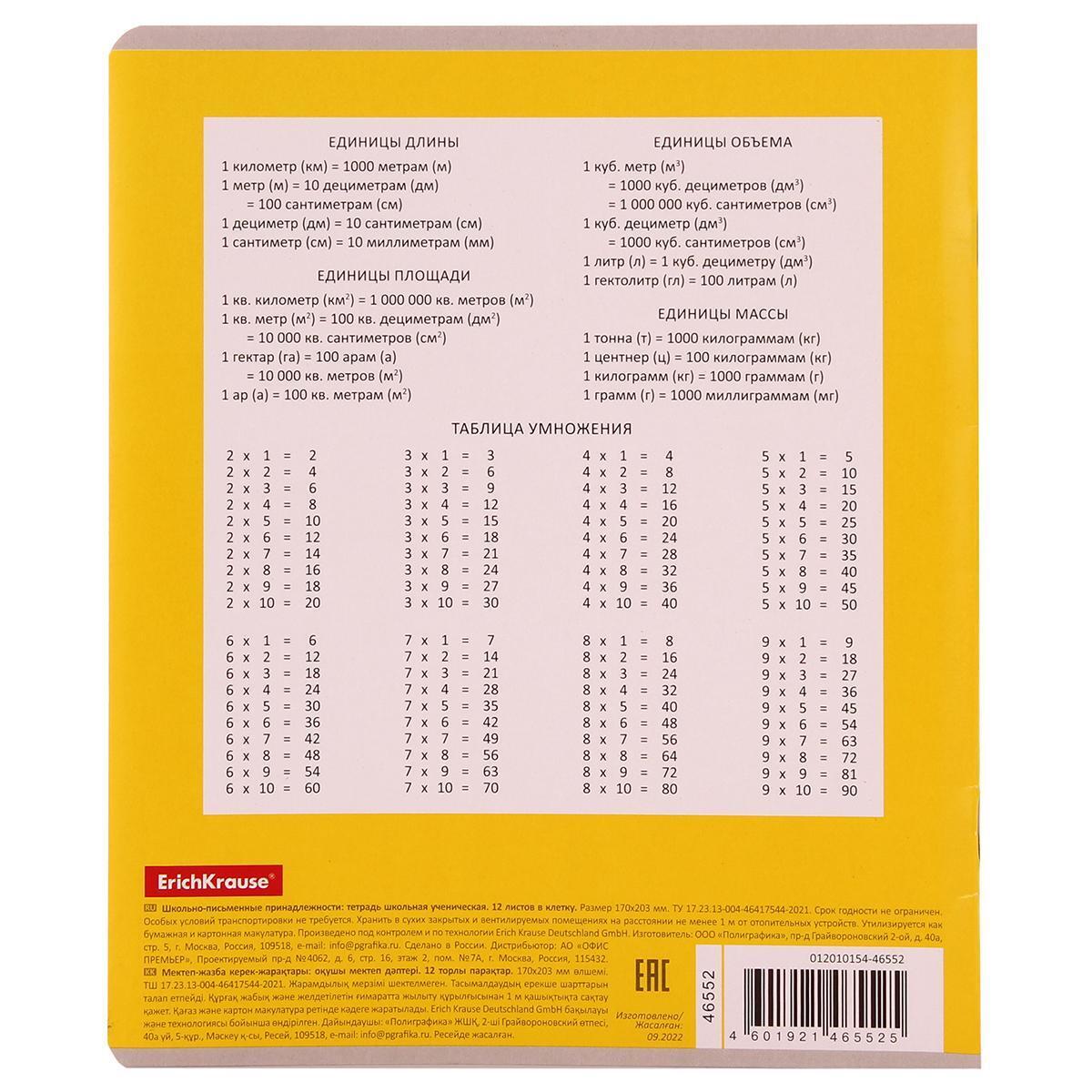 - Встроенная справочная информация на обороте: таблица умножения и единицы измерения