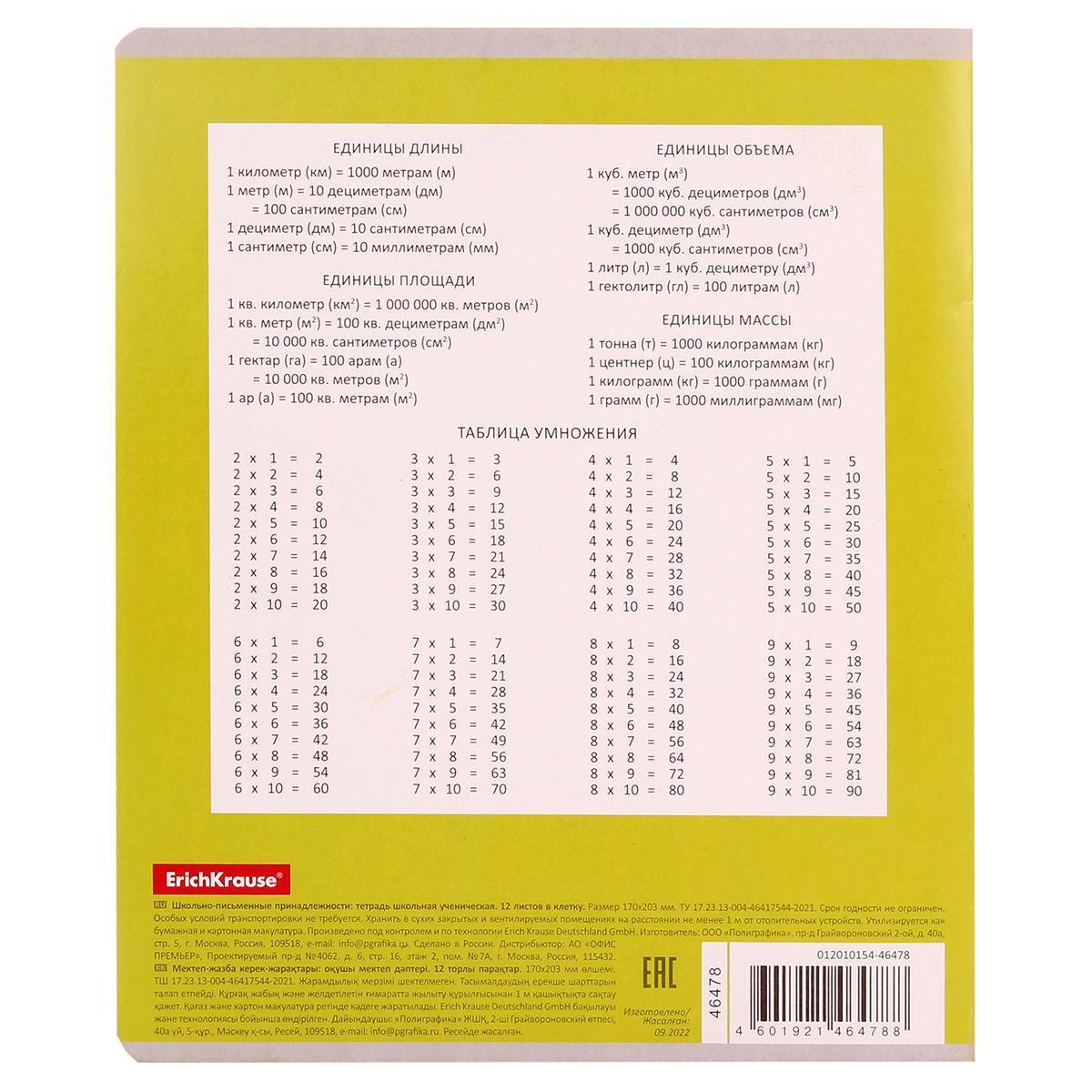 Тетрадь школьная А5+ 12л в клетку, плотная обложка, микс цветов, комплект 5 тетрадей