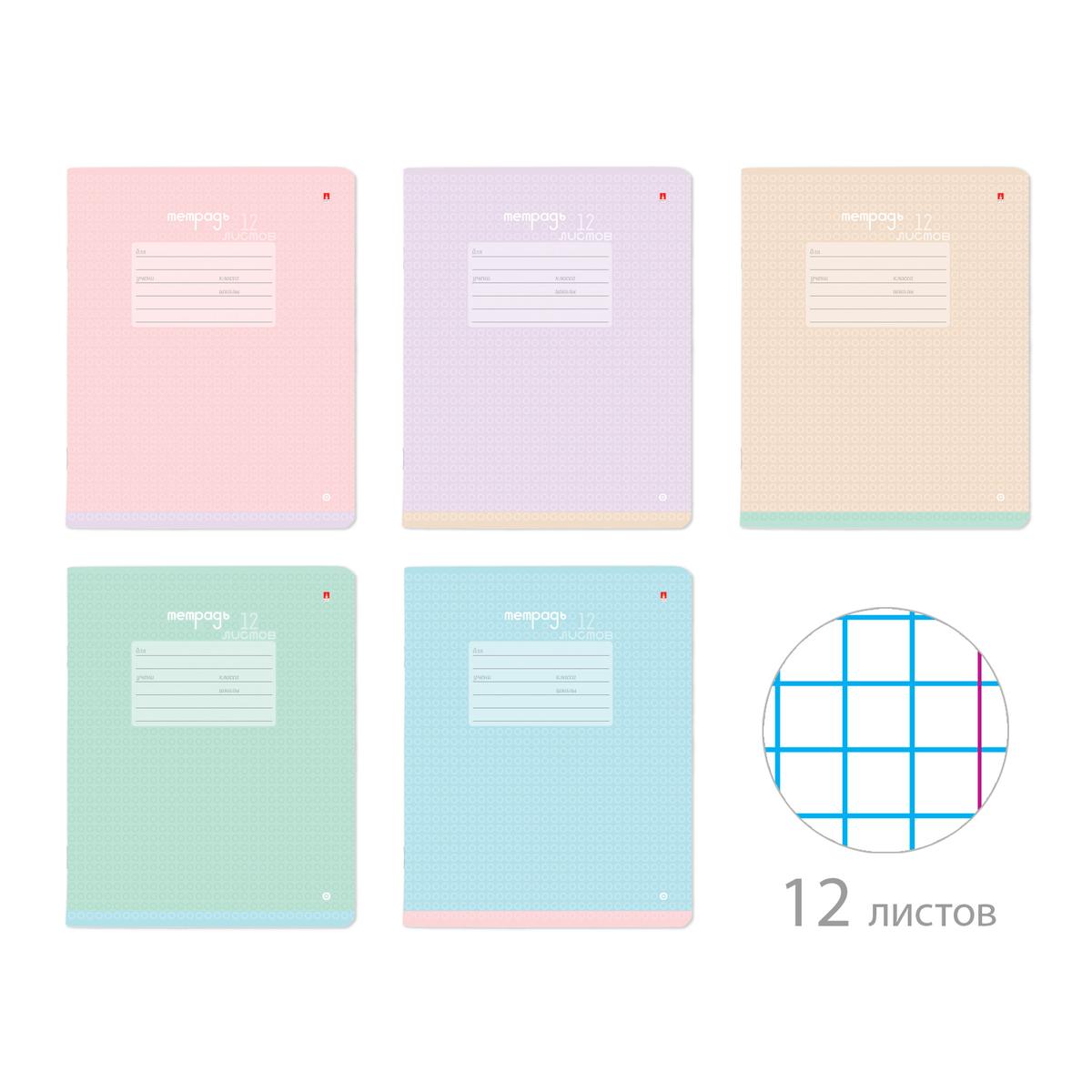 Тетрадь школьная А5, 12л клетка, серия 'Бриз', микс пастельных цветов, комплект 3 тетради