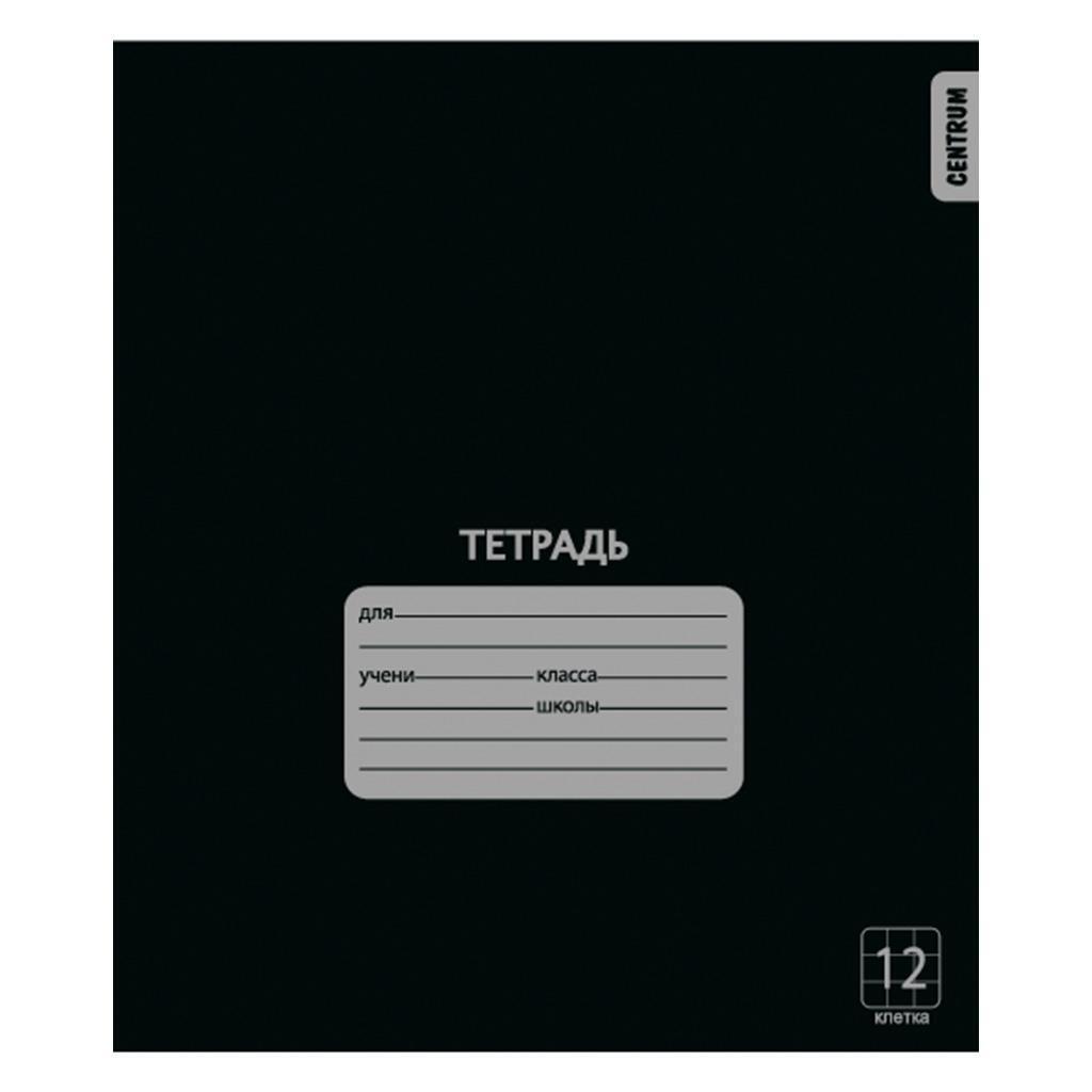 Тетрадь а5, 12 листов в клетку, черная обложка, белизна 100%, для школы и офиса