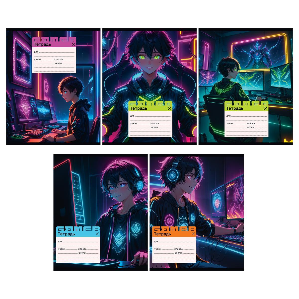 Тетрадь школьная А5 'Gamer' 12л клетка, мелованный картон, микс цветов, комплект 3 тетради