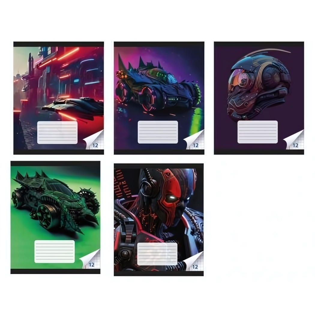 Тетрадь А5 'Киберфантазия', 12л, клетка, микс неоновых цветов, комплект 5шт