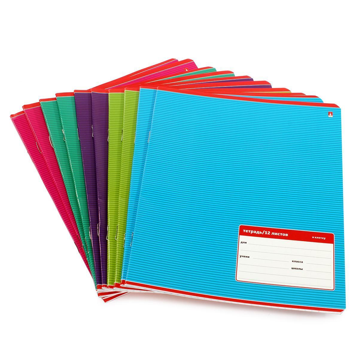 Тетрадь А5 12л в клетку "Классика", микс цветов, плотная обложка, комплект 5 тетрадей.