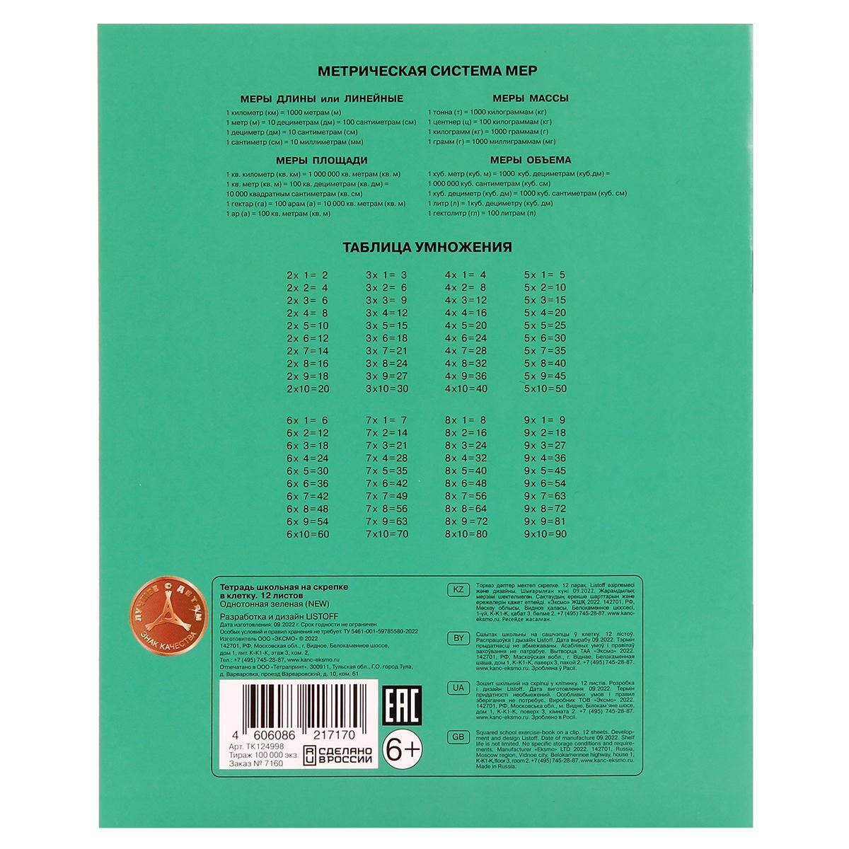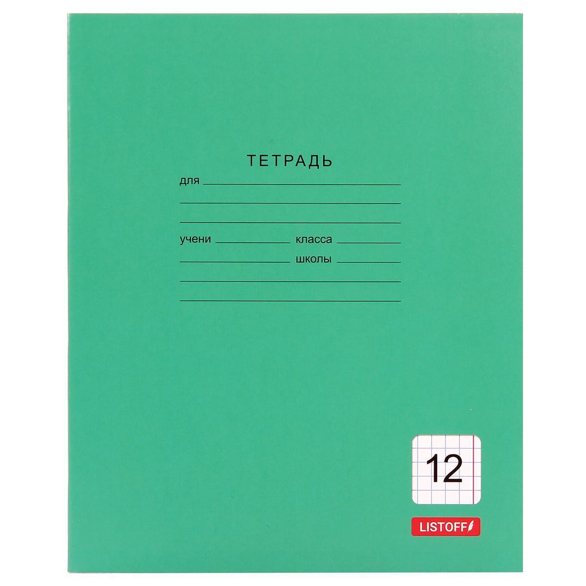 Тетрадь A5 12л. клетка, зеленая обложка, плотный картон, для учеников 6+