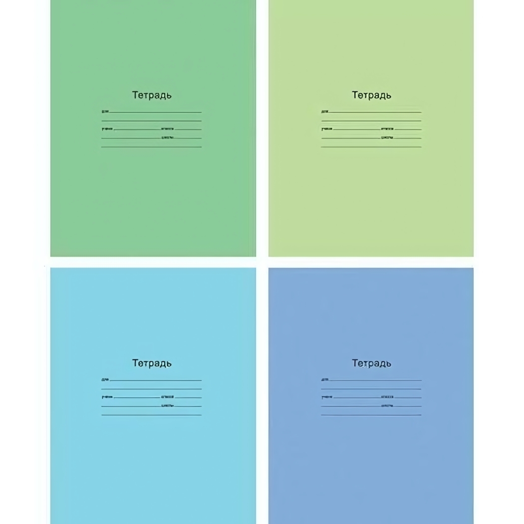 Внутренний блок содержит 12 листов в клетку. Цветовая гамма включает светло-зеленый, салатовый, голубой и синий оттенки.