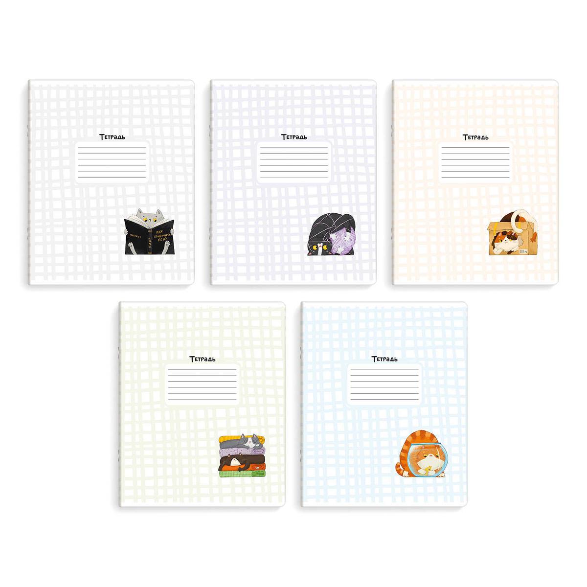 Тетрадь школьная А5 12 листов в клетку "Озорные коты" для учебы и творчества