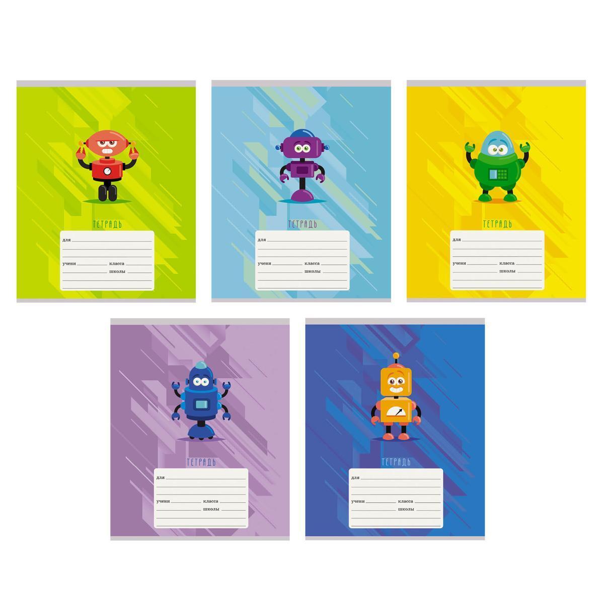 Тетрадь А5 12л в клетку, обложка 'Роботы', мелованная бумага, 6 цветов