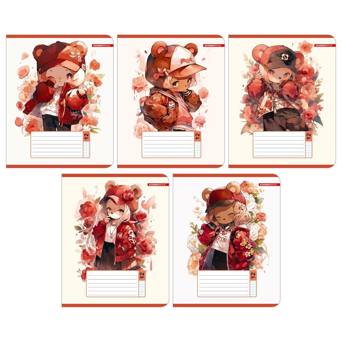 Тетрадь А5 12л клетка "С ушками", микс цветов, комплект 5 тетрадей