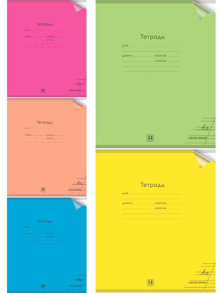 - Разноцветный принт. Насыщенные неоновые цвета обложки помогут ученику быстро найти нужную тетрадь в портфеле среди других учебных пособий.