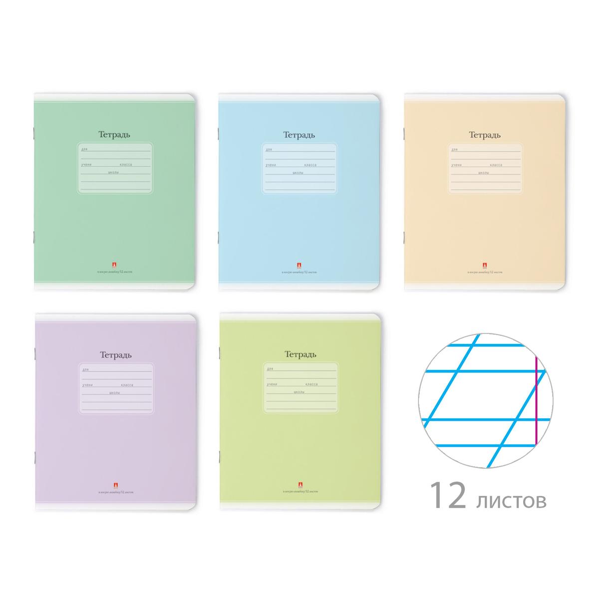 Тетрадь А5 12л косая линия 'Люкс', обложка 190г/м2, микс цветов, комплект 5 тетрадей