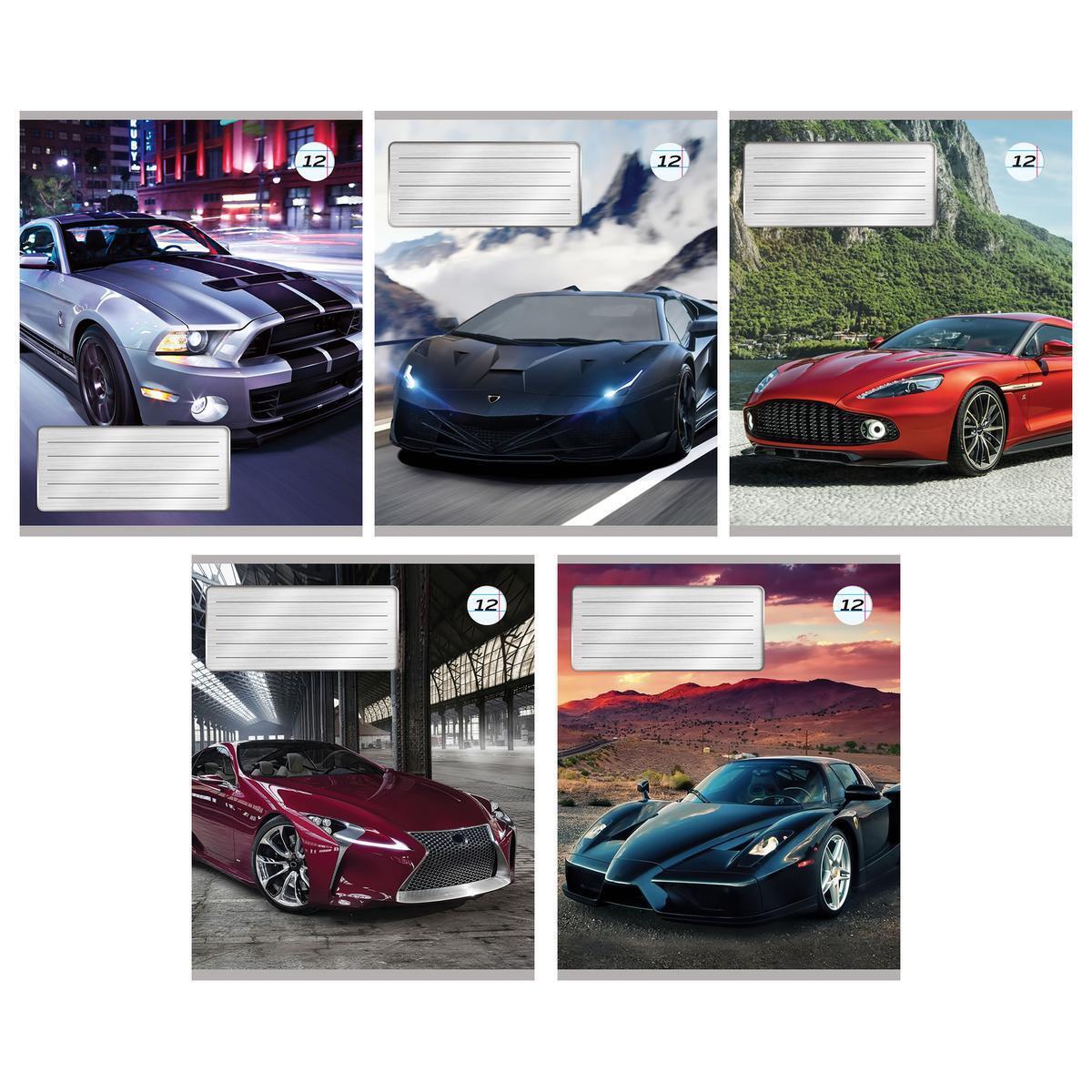 Тетрадь А5 12л линейка "Авто" микс цветов, обложка из мелованного картона, комплект 5 тетрадей