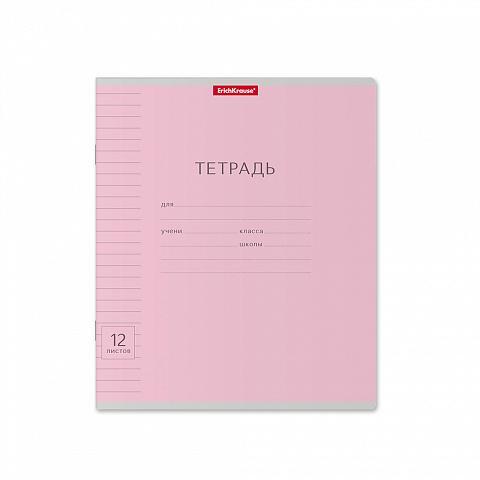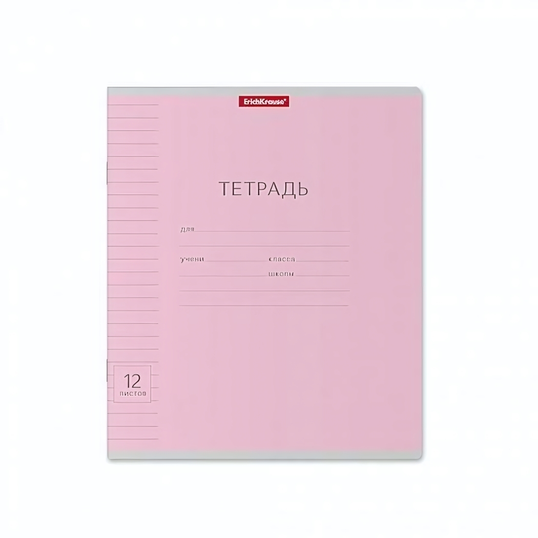 Тетрадь содержит 12 листов, скрепленных металлической скобой. Минималистичный дизайн обложки включает специальные поля для заполнения данных ученика. Доступна в различных оттенках розового цвета.