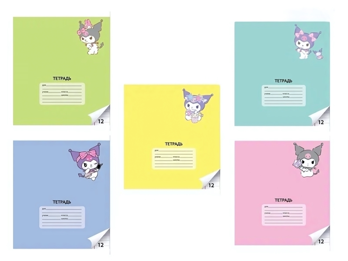 Тетрадь A5 12 листов, линейка, дизайн kuromi, мелованный картон, яркая печать, цвет в ассортименте