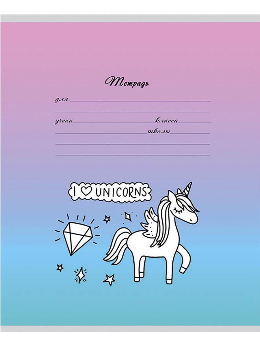 Тетрадь a5, 12 листов в линию, "любимые животные", единорог, для школы