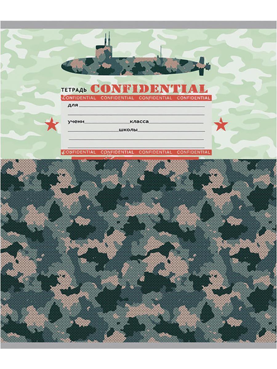 - Уникальный дизайн: Обложка с камуфляжным рисунком и надписью "CONFIDENTIAL" выделит тетрадь среди других.