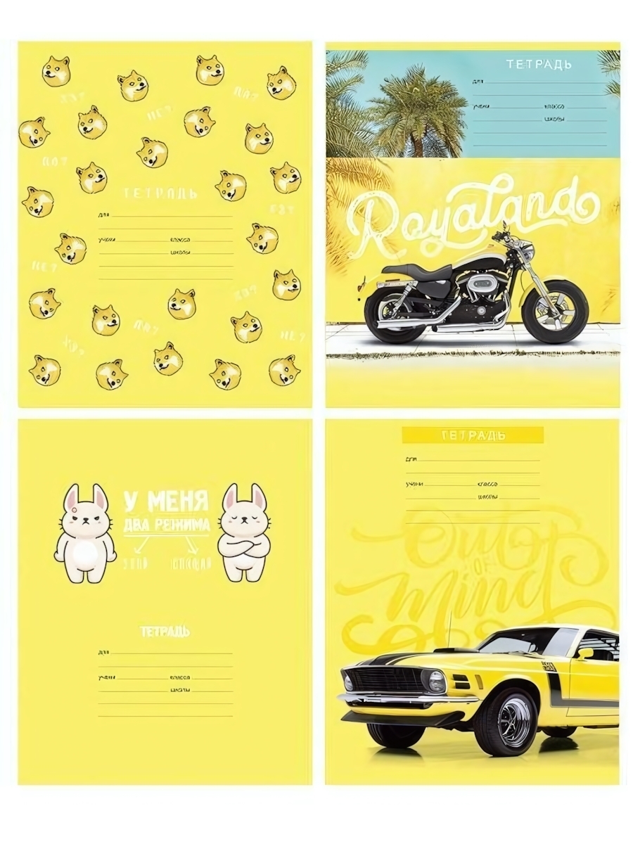 Внутренний блок содержит 12 листов с классической линовкой. Белизна бумаги 100% обеспечивает четкость записей. Яркий дизайн с милыми котятами и спортивным автомобилем придется по душе как младшим школьникам, так и старшеклассникам.