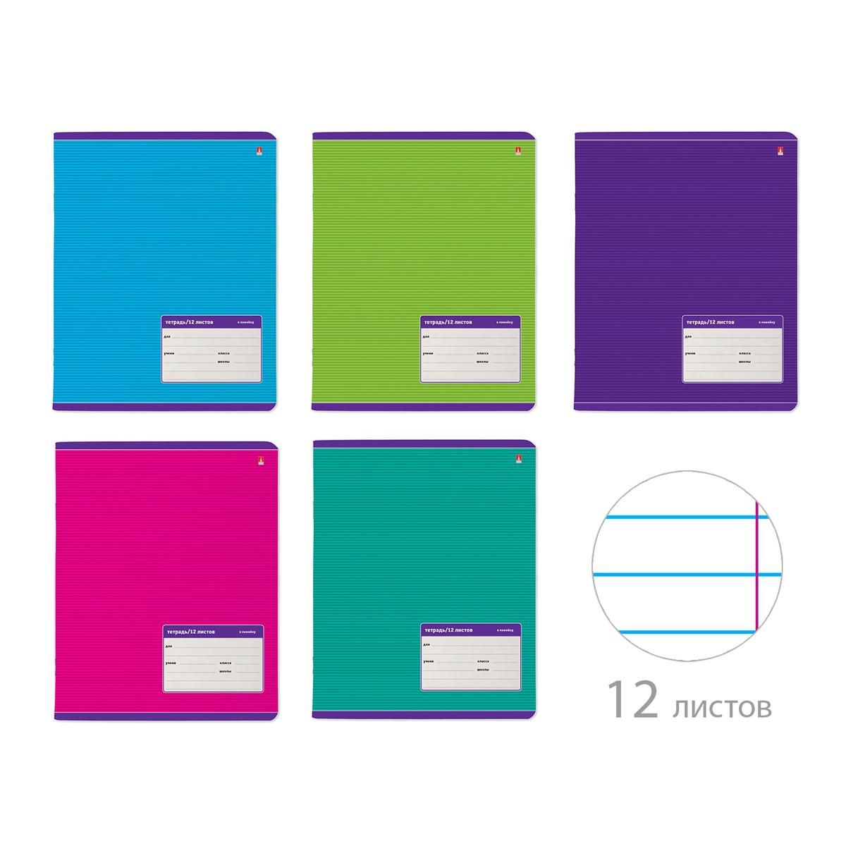 Тетрадь А5 12л в линейку, 'Классика', микс цветов, офсетная бумага 60г, комплект 5 тетрадей