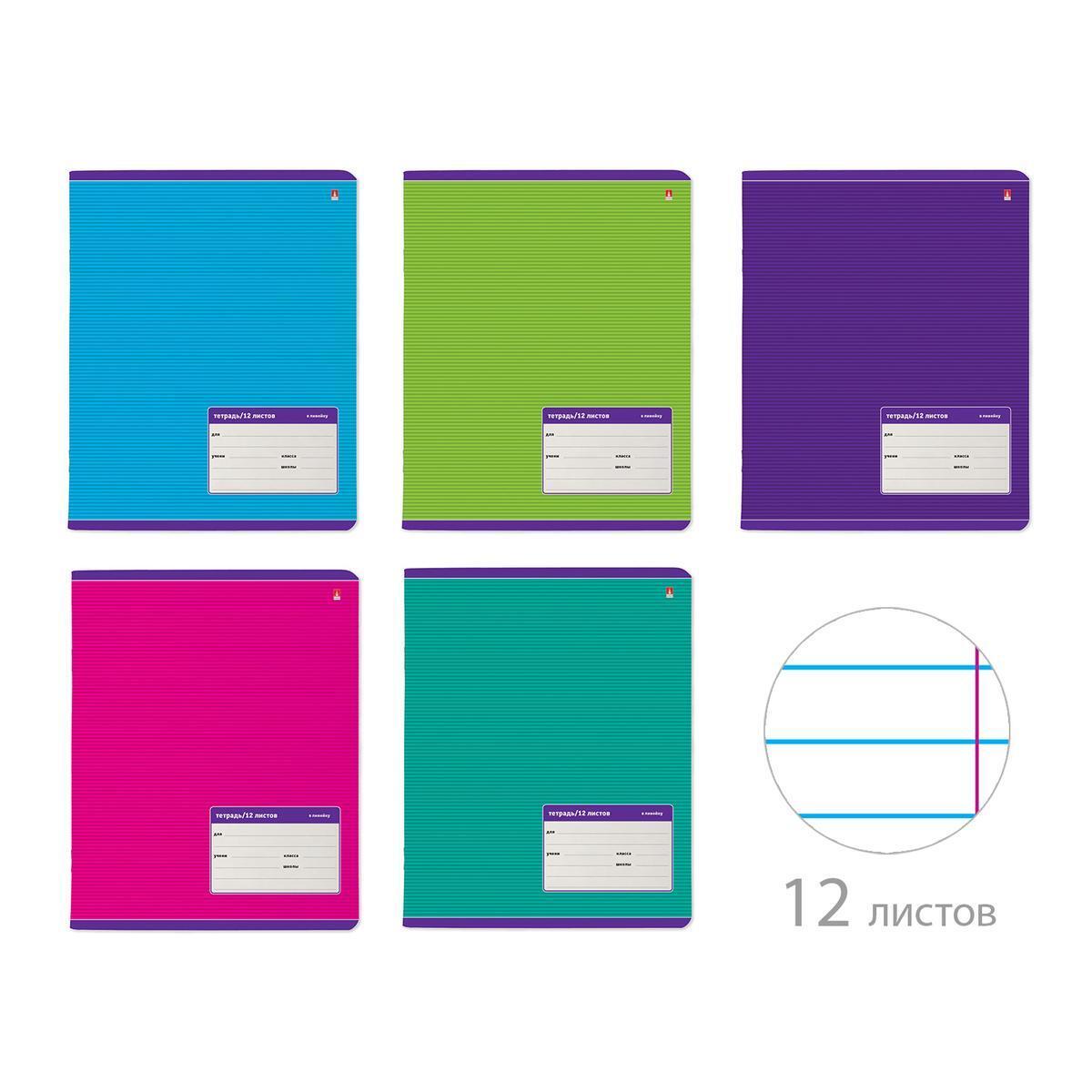 Этот набор тетрадей сочетает практичность и яркий дизайн. Каждая тетрадь имеет обложку одного из пяти насыщенных цветов: голубой, салатовый, фиолетовый, розовый и зеленый. Строгий однотонный внешний вид подходит как для начальной школы, так и для старшеклассников.
