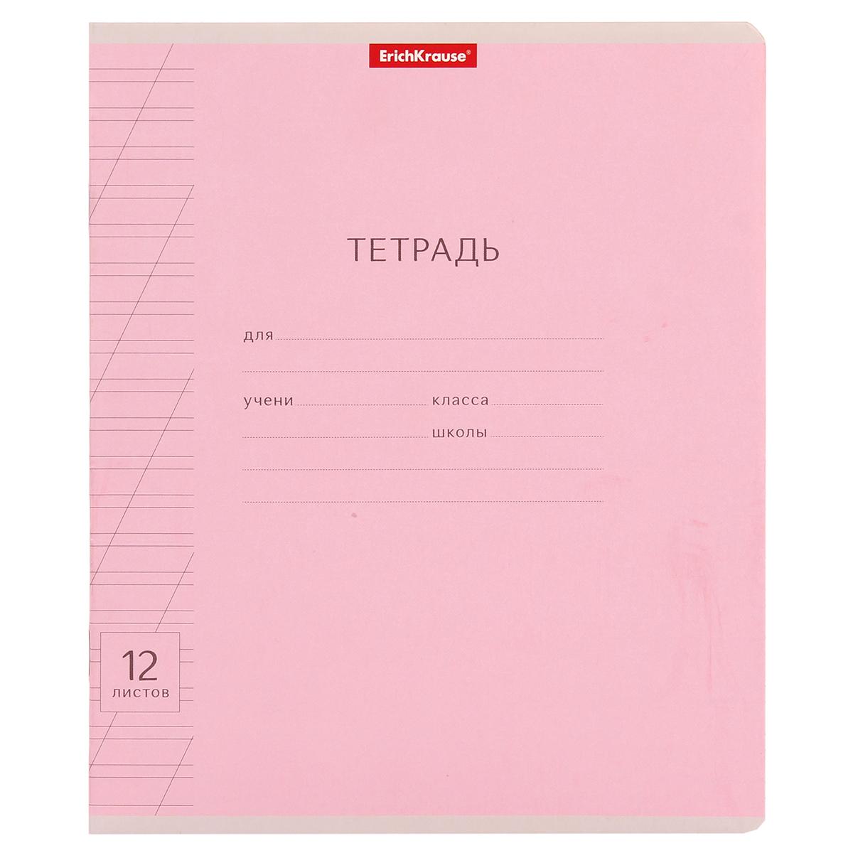 Тетрадь школьная А5+ 12л косая линия, розовая "Классика", Erich Krause, комплект 5 тетрадей
