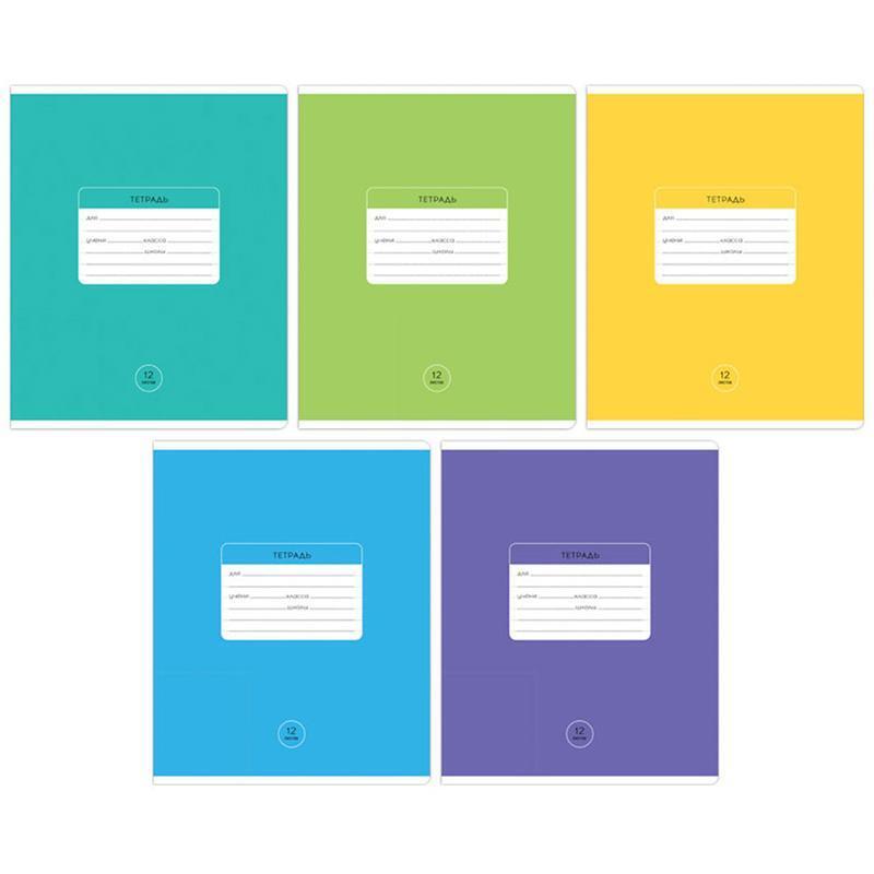 Тетрадь школьная "Однотонная. Классическая" А5, 12 листов, линия, мелованная обложка, 5 цветов