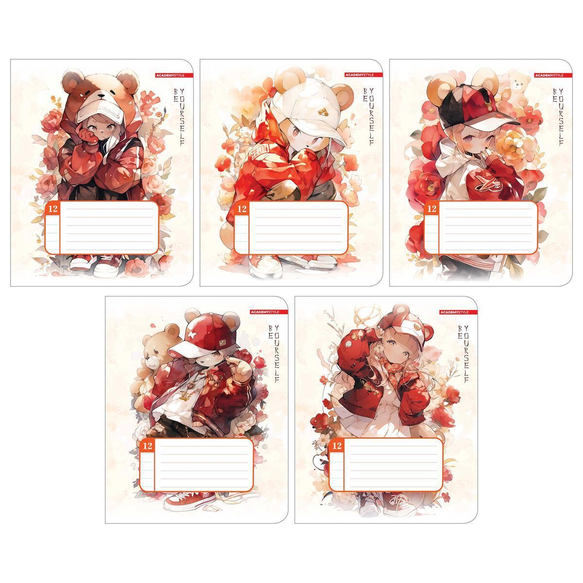 Тетрадь школьная А5 12л линия, мелованный картон, микс цветов, комплект 3 тетради