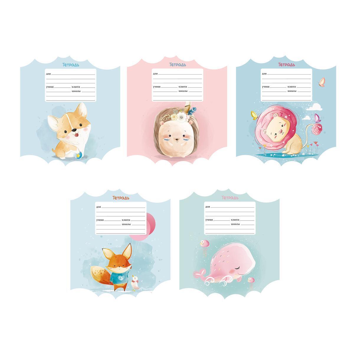 Тетрадь школьная А5 12 листов "В облаках", микс цветов, комплект 5 тетрадей