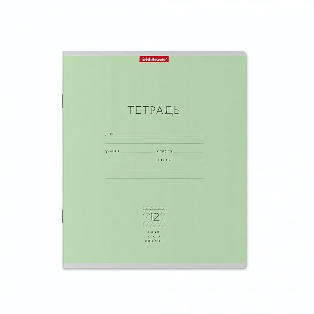 Тетрадь школьная А5+ 12л косая линия, зеленая "Классика" Erich Krause, микс цветов (комплект 3 тетради)